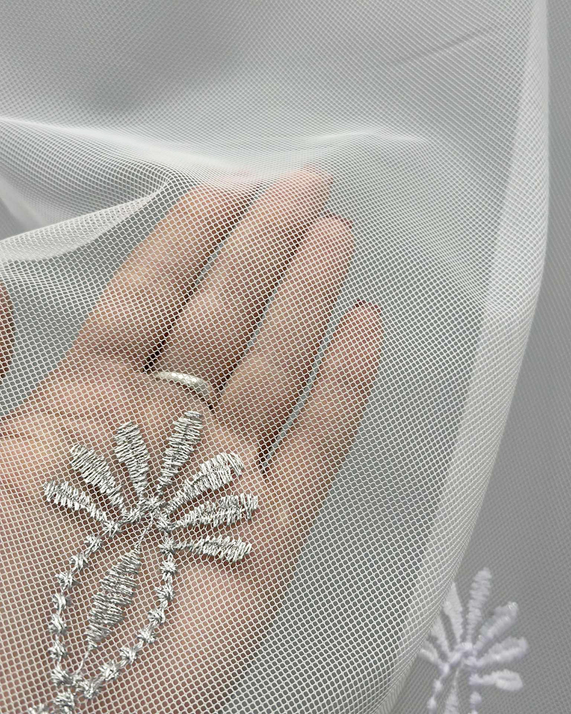 • Struktūra: viegls, gaismu caurlaidīgs siets, dekorēts ar izšūtiem rakstiem.