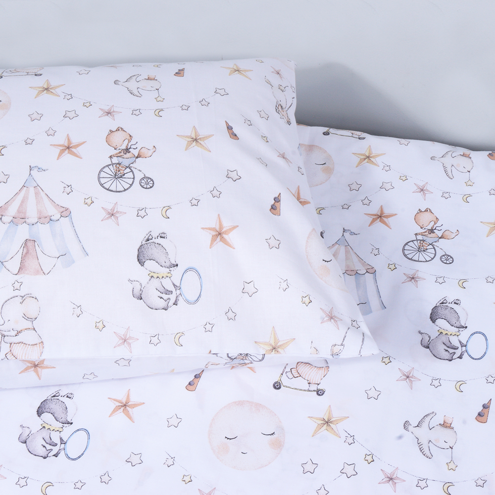Kokvilnas gultas veļas komplekts zīdainim Cirks, 110x140, 40x60 cm