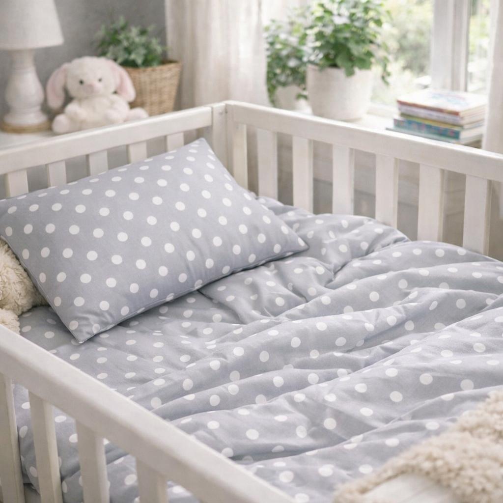 Zīdaiņu gultas veļas komplekts no 100 % kokvilnas, paredzēts ikdienas lietošanai gultiņā. Tā ir praktiska izvēle, kad svarīgs ir pārbaudīts audums, vienkārša kopšana un minimāla komplektācija ar svarīgākajiem gultas veļas elementiem.