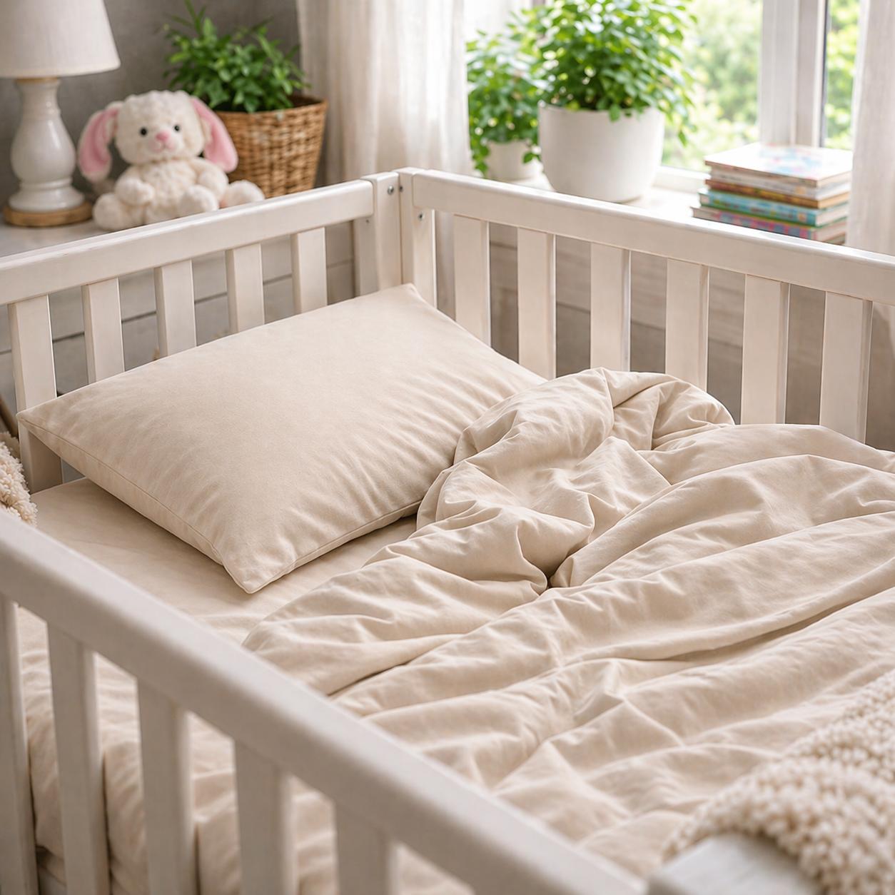Zīdaiņu gultas veļas komplekts no 100 % kokvilnas, paredzēts ikdienas lietošanai gultiņā. Tā ir praktiska izvēle, kad svarīgs ir pārbaudīts audums, vienkārša kopšana un minimāla komplektācija ar svarīgākajiem gultas veļas elementiem.