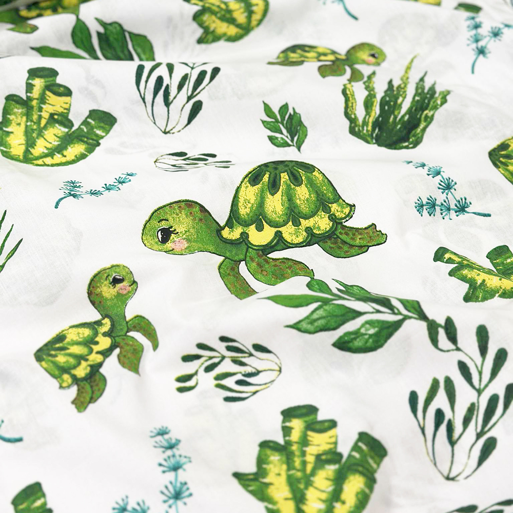 Kokvilnas audums gultasveļai, Bruņurupuči, 0.55x1.60m