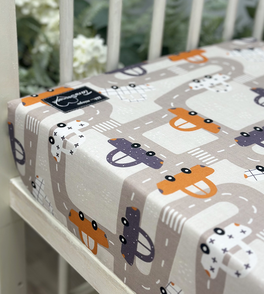 Kokvilnas palags ar gumiju Mini Cars, 60x120 cm