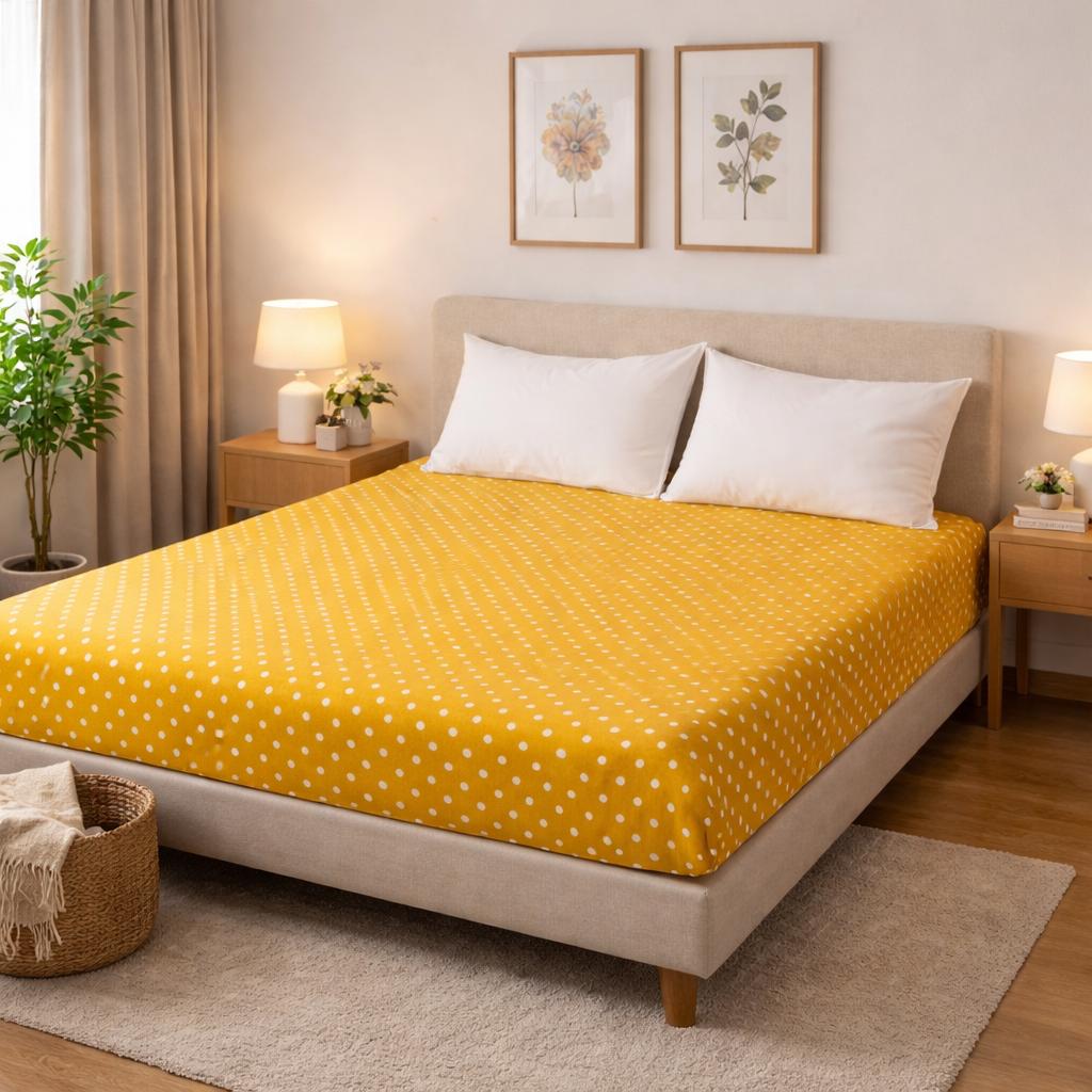Kokvilnas palags bez gumijas Dzeltens punktots, 155x220 cm