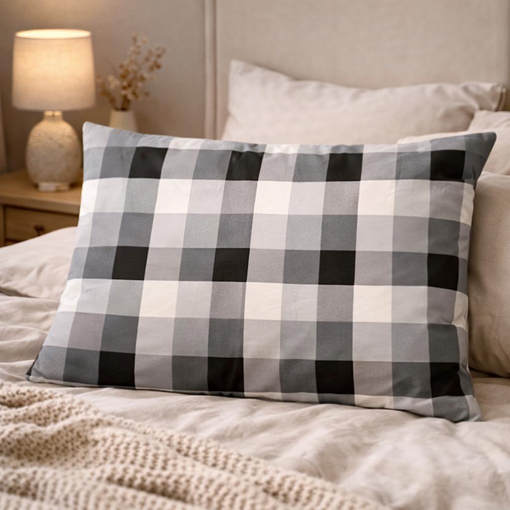 Kokvilnas spilvendrāna ar rāvējslēdzēju Rūtains, 50x70 cm