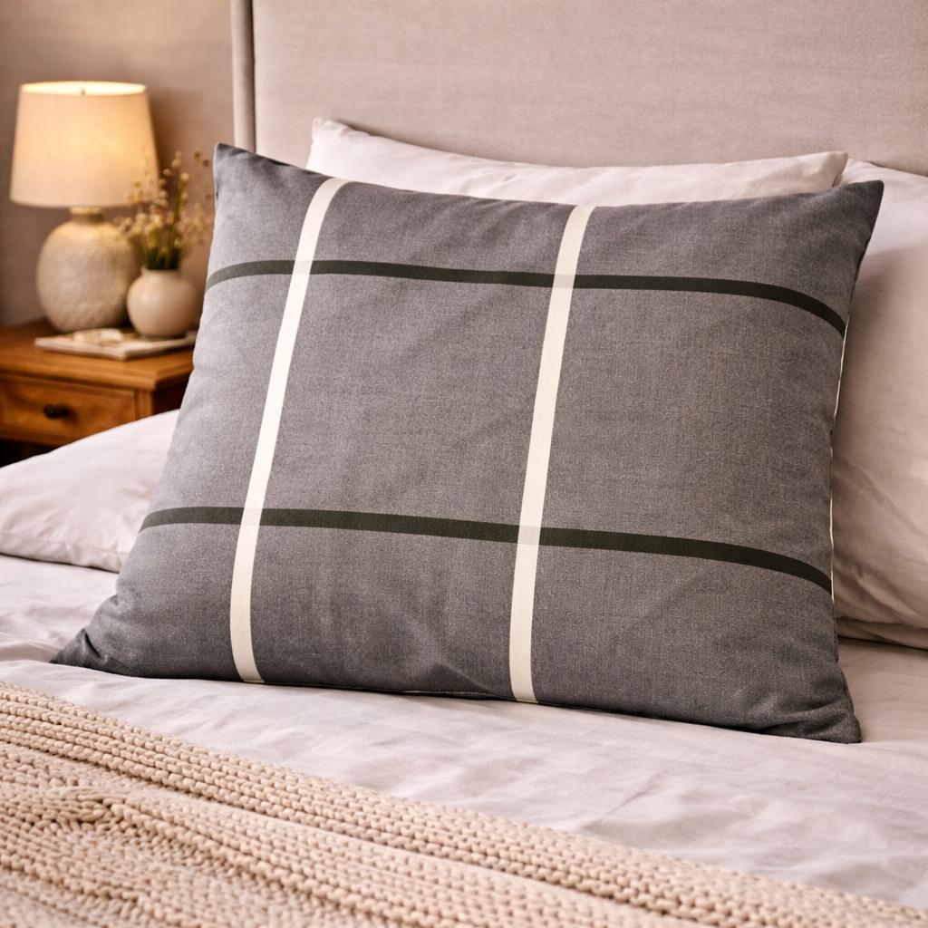 Kokvilnas spilvendrāna ar rāvējslēdzēju Pelēks rūtains, 70x80 cm