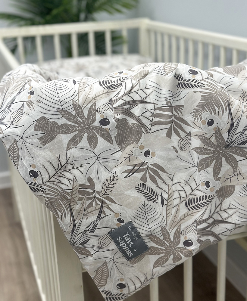 Katra šī zīdaiņu gultas veļas komplekta detaļa tiek šūta Tavs Sapnss šuvēju rokām Lietuvā, pievēršot īpašu uzmanību audumu izvēlei un apstrādes kvalitātei. Rūpīgi atlasīti, maigi un droši materiāli, kā arī uzmanība detaļām nodrošina, ka gultas veļa ir izturīga, patīkama pieskārienam un piemērota ikdienas mazuļa miegam.