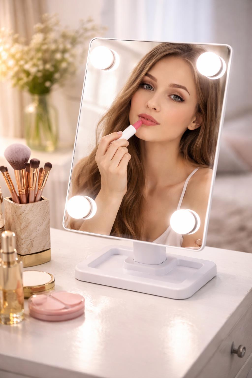 Spogulis ir ļoti praktiska un ļoti noderīga ierīce skaistumkopšanas procedūrām, grima veidošanai vai vienkārši kontaktlēcu uzlikšanai. Spoguļa četri stūri ir aprīkoti ar LED apgaismojumu, ko darbina spoguļa iekšpusē esošās baterijas (baterijas nav iekļautas komplektā), un to pārvalda ar spoguļa korpusā iebūvētu skārienjutīgu slēdzi.
