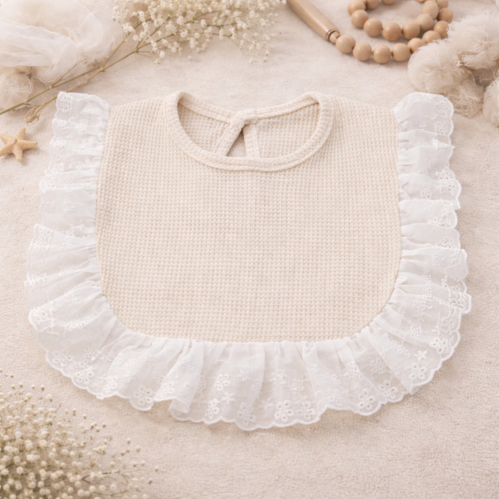 Maigs un elegants priekšautiņš, kas radīts mazuļa komfortam un stilam. Dabīgo, silto toņu kombinācija piešķir mājīgumu, savukārt smalkās mežģīnes un dekoratīvās lentītes rada īpaši romantisku izskatu.