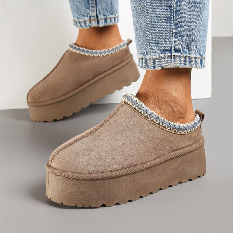Čību iekšpuse ir pārklāta ar mīkstu mākslīgās kažokādas audumu, kas nodrošina siltumu pēdai. Biezā, bet ļoti vieglā zole nodrošina komfortu staigāšanai.