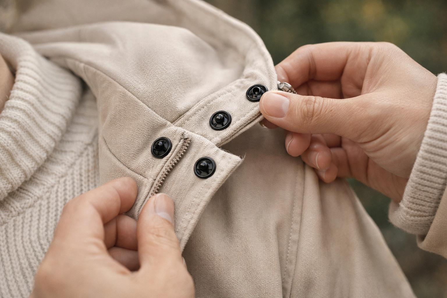 Šī aizdare sastāv no divām daļām, kas ir piešujamas pie apģērba un saspiežamas viena pret otru. Šos stiprinājumus var piešūt pie jakām, mēteļiem, džemperiem un krekliņiem.