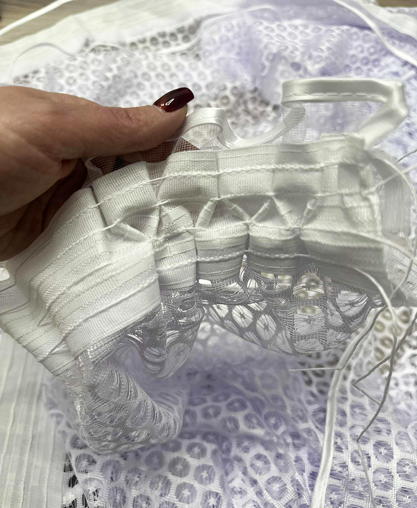 Augstas kvalitātes žakarda audums izceļas ar izturību, ilgmūžību un izteiksmīgu tekstūru. Arkas forma piešķir logam īpašu raksturu, savukārt smalkās mežģīnes apakšā rada greznu, dekoratīvu akcentu, kas lieliski iederas gan klasiskā, gan modernākā interjerā. Aizkars ir diezgan blīvs un smagāks, tāpēc tas skaisti krīt, saglabā formu un izskatās solīdi.