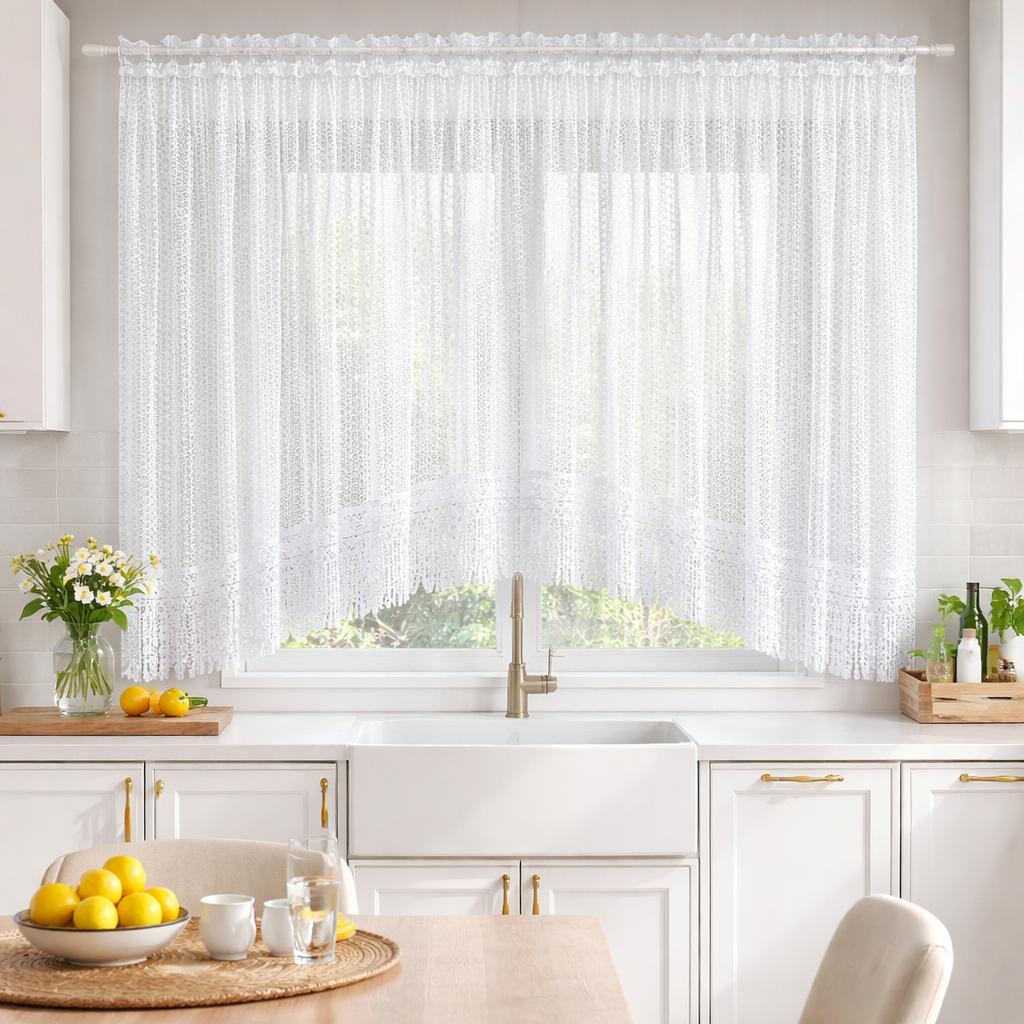 Šis žakarda arkas aizkars ar mežģīnēm ir lieliska izvēle tiem, kuri novērtē solīdu dizainu, kvalitāti un funkcionalitāti. Tas piešķir telpai eleganci, rada mājīgu atmosfēru un kļūst par izteiksmīgu loga dekora akcentu.