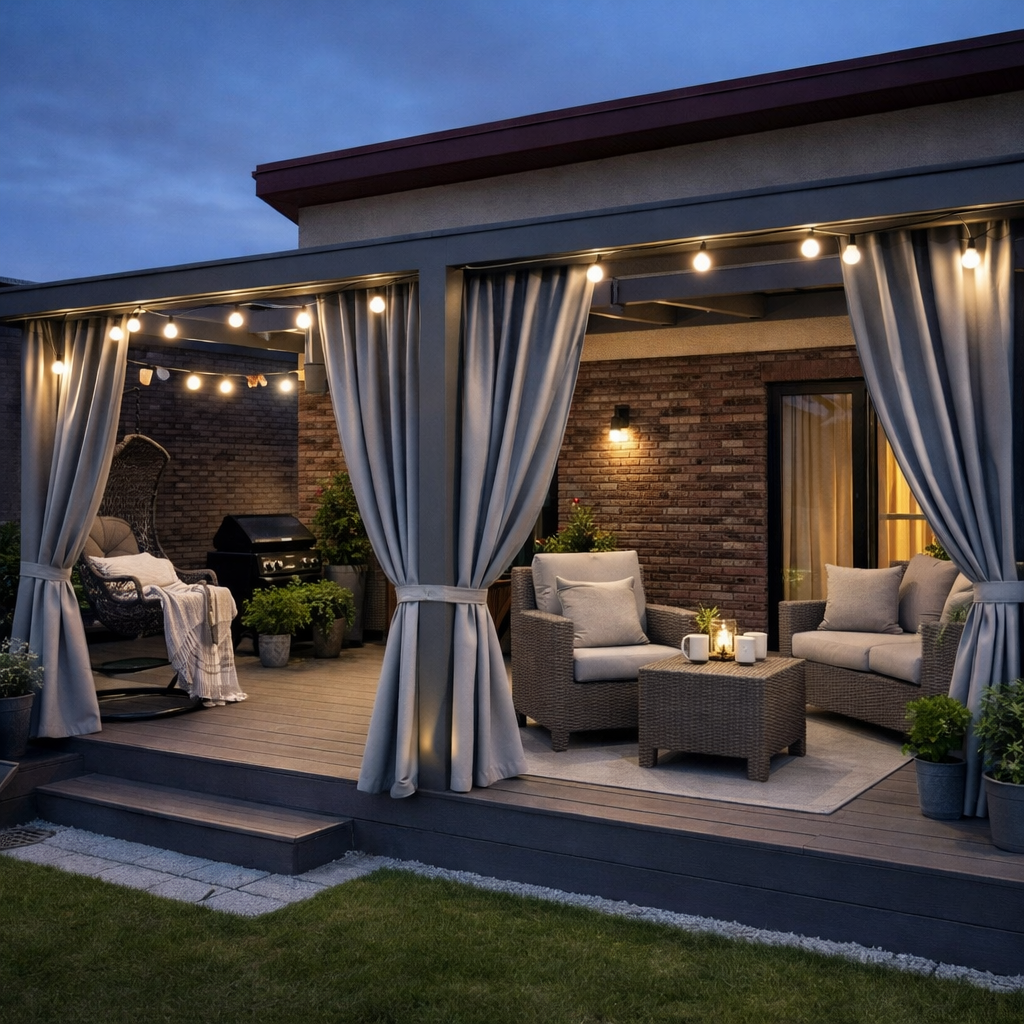 Terase nav tikai vieta, kur paslēpties no vēja, saules vai lietus. Tā ir arī vieta, kur pulcēties ģimenei un draugiem, lai vakaros kopā tērzētu vai pavadītu omulīgas pēcpusdienas. Terase kļūst par jūsu mājas daļu, kā atsevišķa telpa ārā, kur var pavadīt daudz laika. Taču reizēm ir vēlme aizbēgt no karstās saules un vējainā dienā - no vēja brāzmām. Ja jūsu terase nav iestiklota un ir ar vaļējām sienām, vislabākais risinājums ir piekarināt aizkarus. Mūsu šūtie aizkari lieliski pasargā no saules vai vēja. Aizkari ir izgatavoti no ūdensnecaurlaidīga auduma, tāpēc tie paglābs arī no lietus un terase būs mājīga un patīkama.
