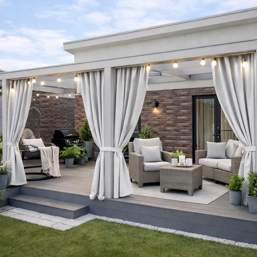Terase nav tikai vieta, kur paslēpties no vēja, saules vai lietus. Tā ir arī vieta, kur pulcēties ģimenei un draugiem, lai vakaros kopā tērzētu vai pavadītu omulīgas pēcpusdienas. Terase kļūst par jūsu mājas daļu, kā atsevišķa telpa ārā, kur var pavadīt daudz laika. Taču reizēm ir vēlme aizbēgt no karstās saules un vējainā dienā - no vēja brāzmām. Ja jūsu terase nav iestiklota un ir ar vaļējām sienām, vislabākais risinājums ir piekarināt aizkarus. Mūsu šūtie aizkari lieliski pasargā no saules vai vēja. Aizkari ir izgatavoti no ūdensnecaurlaidīga auduma, tāpēc tie paglābs arī no lietus un terase būs mājīga un patīkama.