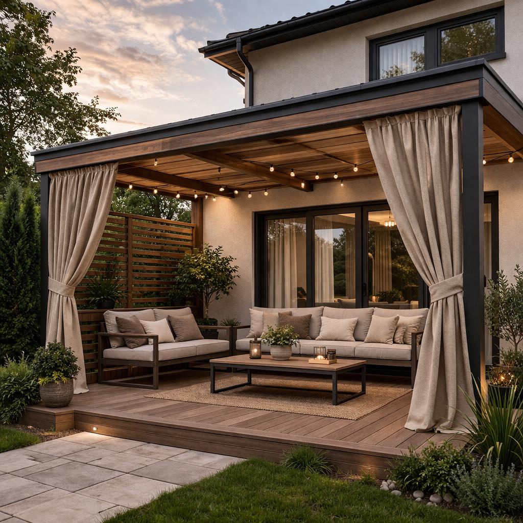 Terase nav tikai vieta, kur paslēpties no vēja, saules vai lietus. Tā ir arī vieta, kur pulcēties ģimenei un draugiem, lai vakaros kopā tērzētu vai pavadītu omulīgas pēcpusdienas. Terase kļūst par jūsu mājas daļu, kā atsevišķa telpa ārā, kur var pavadīt daudz laika. Taču reizēm ir vēlme aizbēgt no karstās saules un vējainā dienā - no vēja brāzmām. Ja jūsu terase nav iestiklota un ir ar vaļējām sienām, vislabākais risinājums ir piekarināt aizkarus. Mūsu šūtie aizkari lieliski pasargā no saules vai vēja. Aizkari ir izgatavoti no ūdensnecaurlaidīga auduma, tāpēc tie paglābs arī no lietus un terase būs mājīga un patīkama.