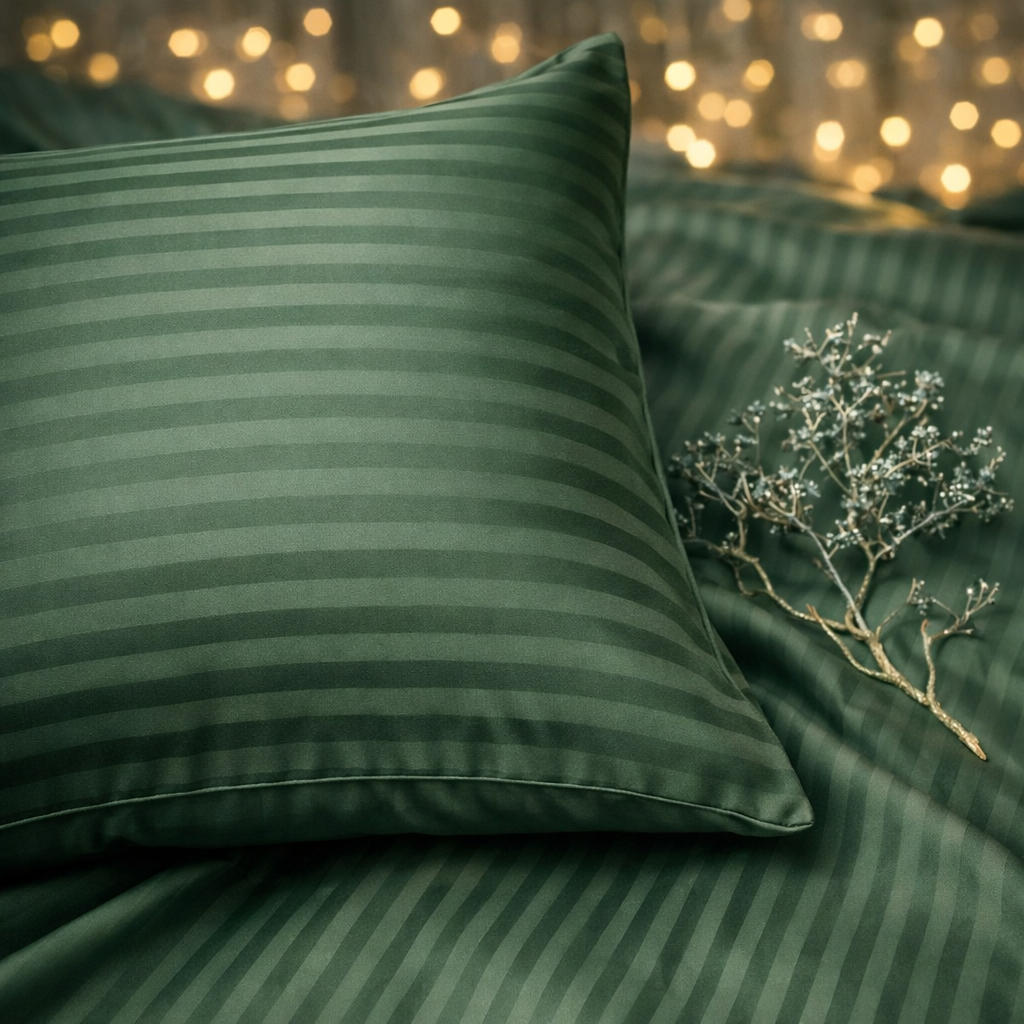 Šī spilvendrāna ir izgatavota no augstas kvalitātes kokvilnas satīna, kas izceļas ar savu maigumu, gludu virsmu un smalku spīdumu. Audums maigi pieguļ ādai, neradot kairinājumu vai diskomfortu. Svītrainais dizains piešķir eleganci un modernitāti, vienlaikus saglabājot vieglu, nomierinošu toni. Kokvilnas satīns labi elpo, tāpēc jutīsieties ērti gan siltās, gan vēsākās naktīs.