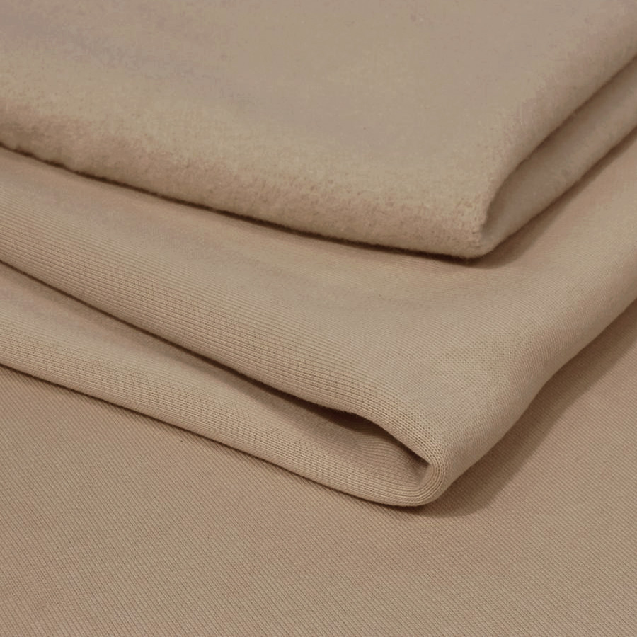 Trikotāža ar pūciņu – tas ir ļoti mīksts, maigs un silts audums, ideāli piemērots apģērbiem vēsākam gadalaikam. Iekšpuse pārklāta ar maigu pūciņu, kas piešķir siltumu, komfortu un patīkamu valkāšanas sajūtu, tāpēc audums lieliski der gan bērniem, gan pieaugušajiem.