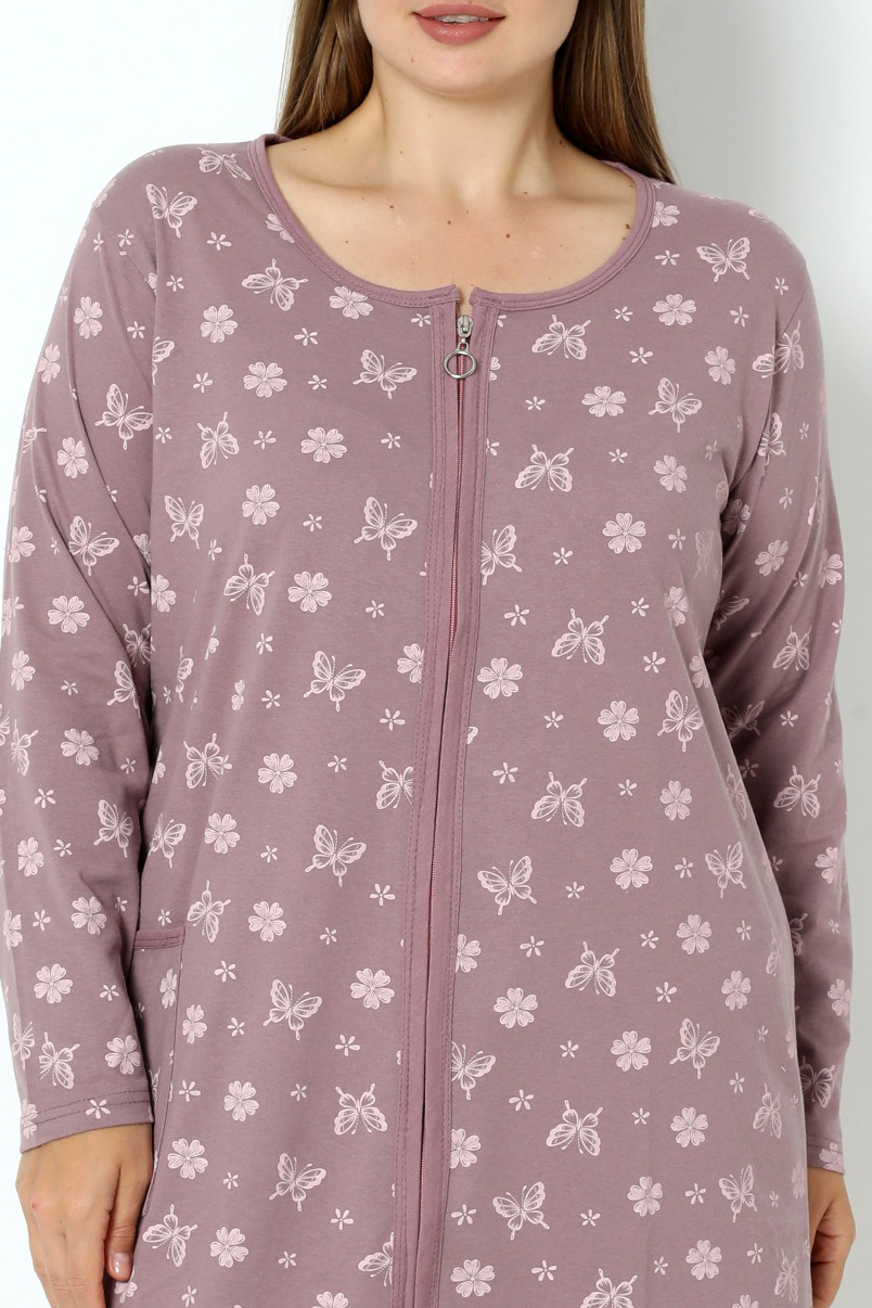Halāts veidots tā, lai nodrošinātu kustību brīvību un maksimālu komfortu visas dienas garumā. Brīvais piegriezums ļauj justies ērti gan veicot mājas darbus, gan atpūšoties. Rāvējslēdzējs piešķir papildu praktiskumu, bet vienkāršais dizains padara halātu universālu un viegli kombinējamu.